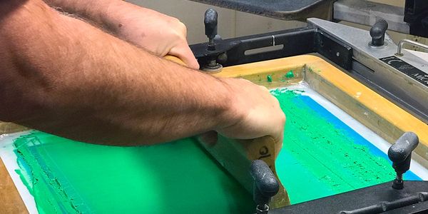 Here's a look behind the scenes - LDG printing retro logos on seed bags for Funk Bros. Seed Co.